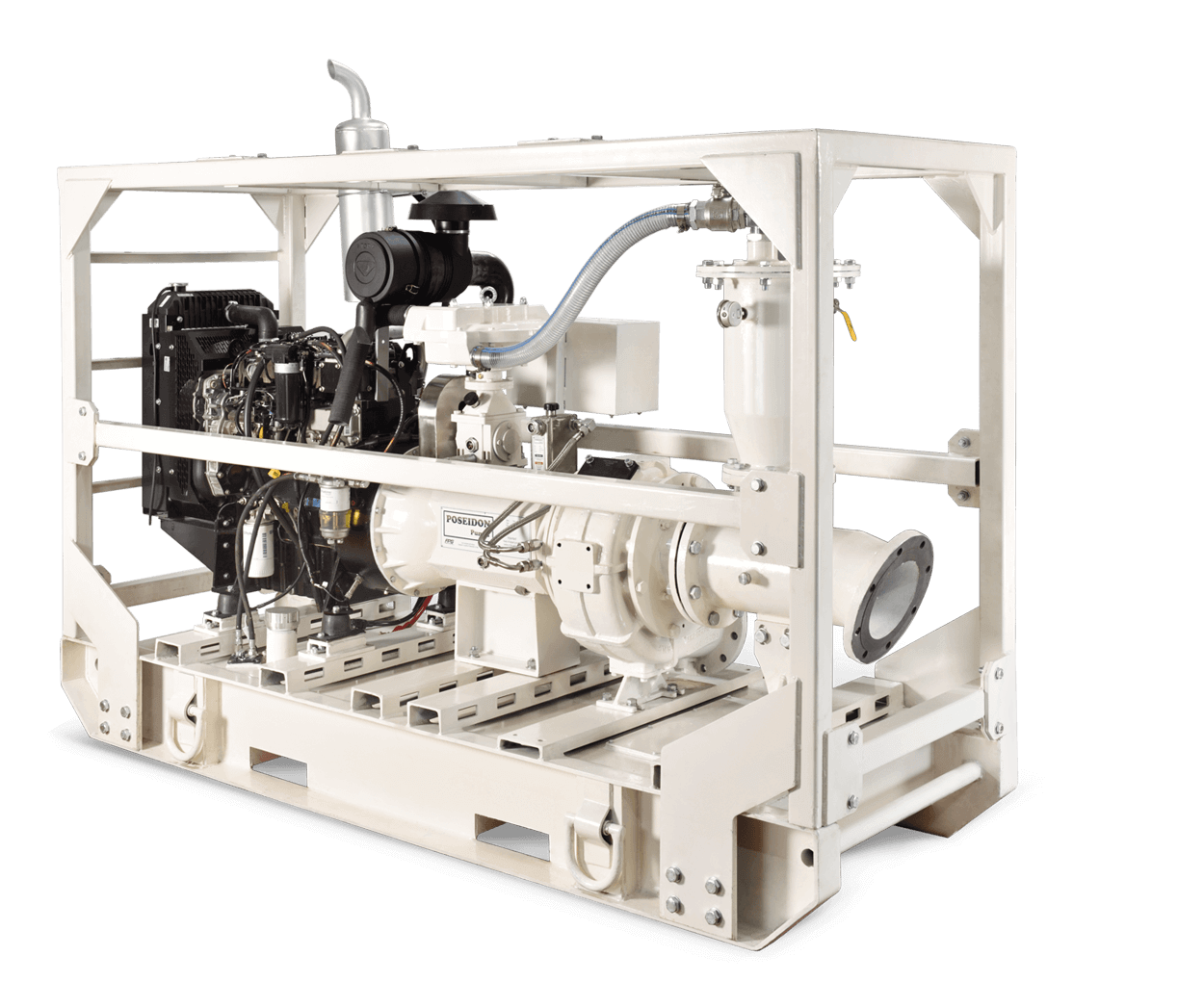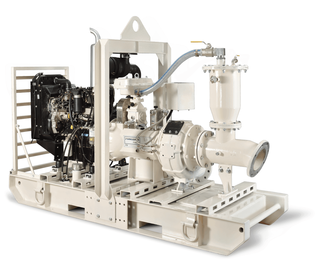 The Poseidon range of Dry Running Automatic Prime pumps LP Series comes in 7 models which cover a flow range of up to 3500 M3/Hr and heads up to 65m. Automatic priming via the patented Smart primeTM 50 or 100 cfm diaphragm pump and priming tank.